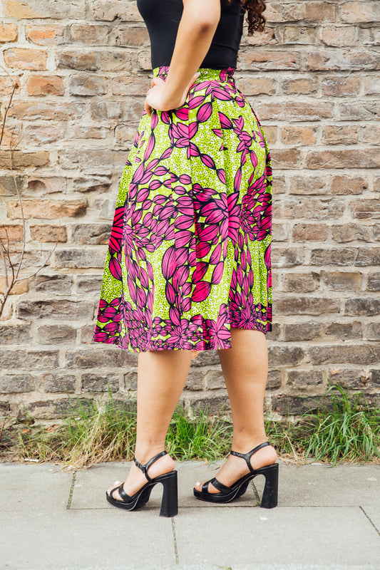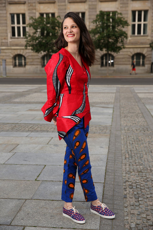 Denim-Hoodie-Wickelkleid mit rotem African Print