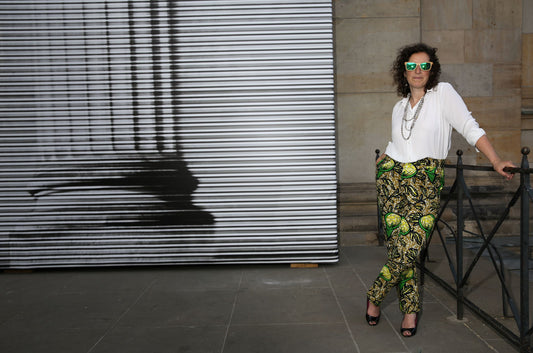 Denim-Hoodie-Wickelkleid mit rot-grauen African Print
