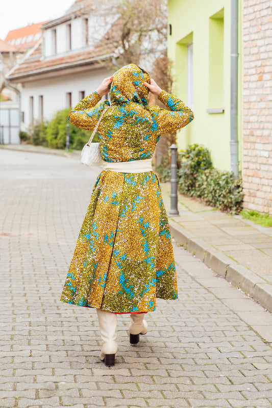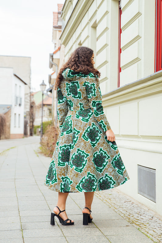 Hoodie-Wickelkleid aus grünem African Print